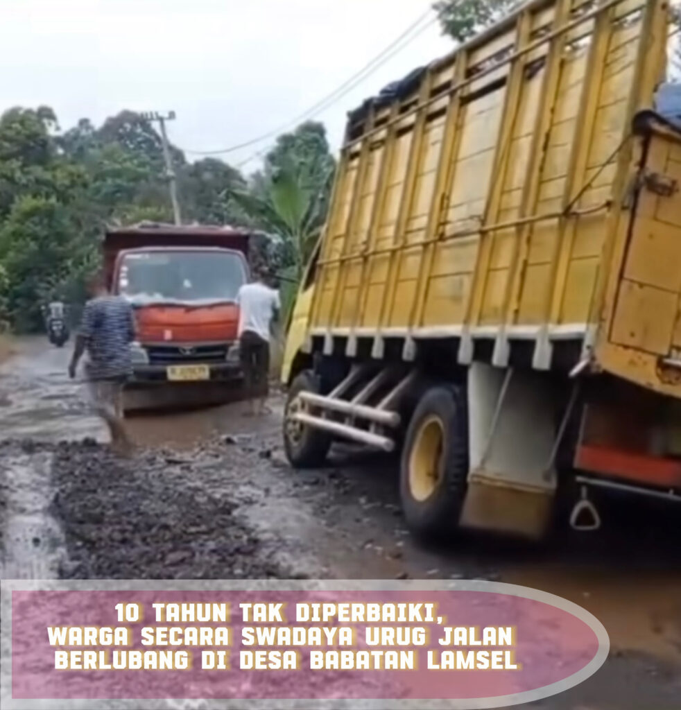 10 TAHUN TAK DIPERBAIKI, WARGA SECARA SWADAYA URUG JALAN BERLUBANG DI DESA BABATAN LAMSEL