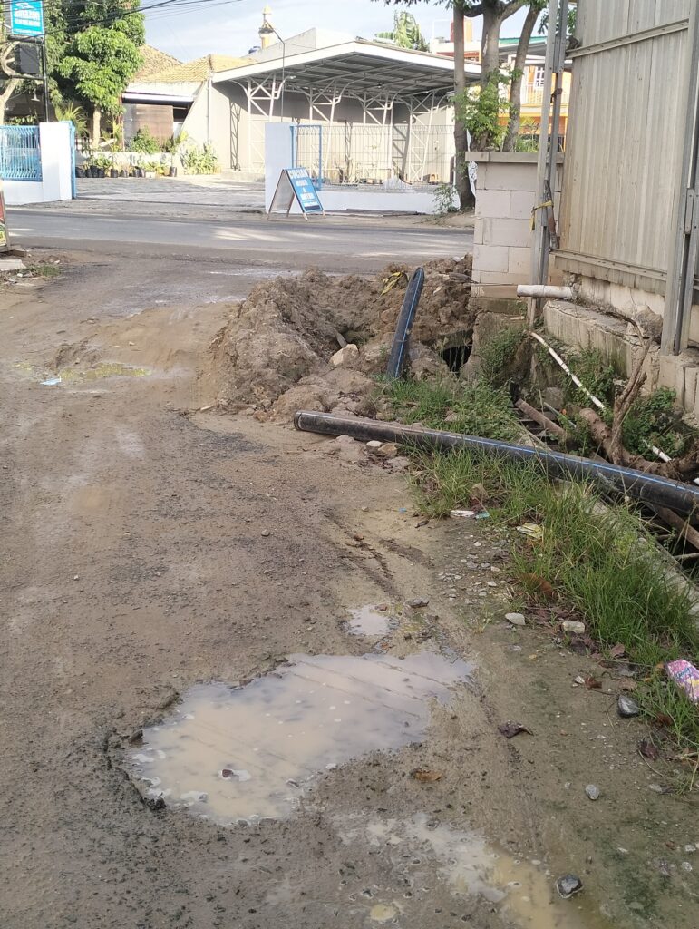 (Penggalian dan penanaman Pipa saluran air disetiap pinggir jalan, untuk penyaluran Air Bersih. 25/05/2025 (Foto Oleh : Selssy) ).